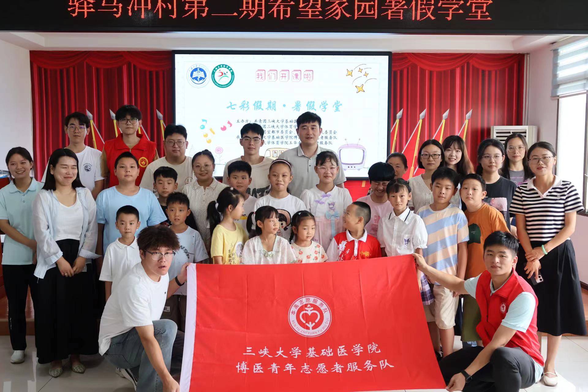 (通讯员 邹文君 方政民 黄祥宇 向秋帆 杨可)以青春之名,肩负时代担当;以志愿之声,响应时代号召。为帮助孩子们度过一个安全、快乐、有意义的暑假,缓解暑假带娃难,2024年8月10日,由三峡大学基础医学院和三峡大学体育学院志愿者组成的“乡”遇助梦实践团队,联合驿马冲村村民委员会,于湖北省宜都市驿马冲村正式开展为期16天的七彩假期活动。