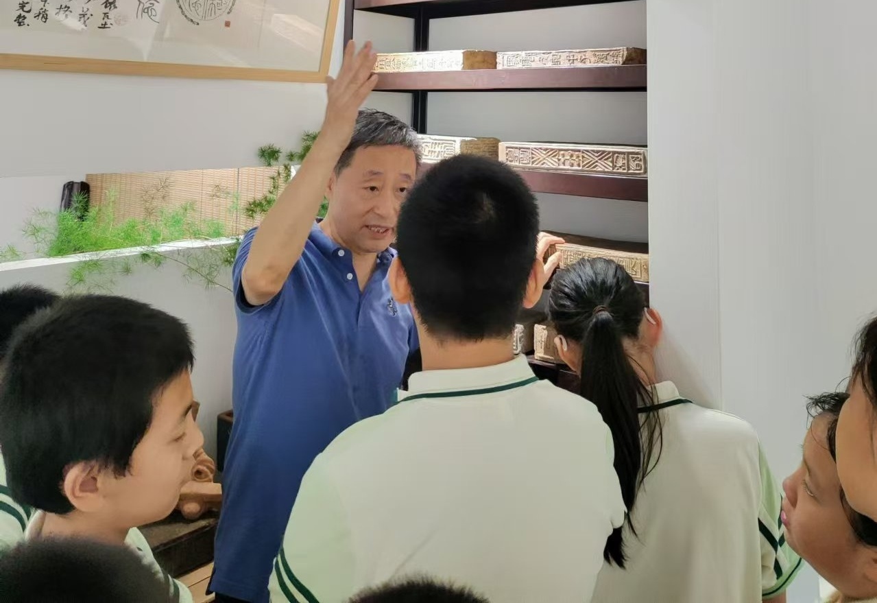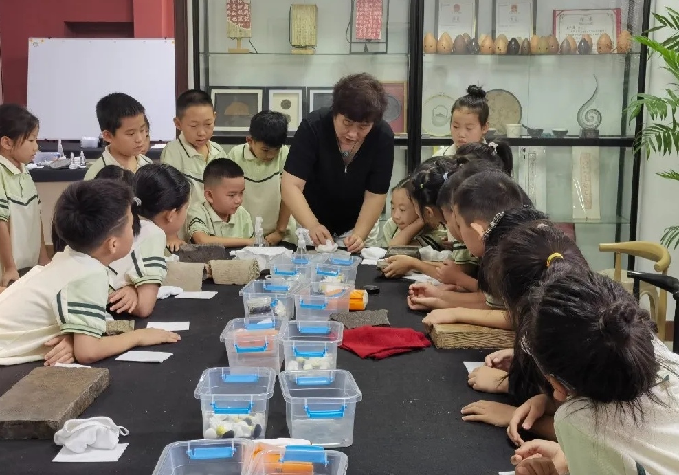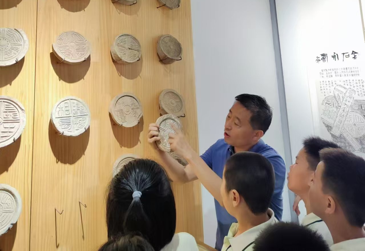 8月6日,山东理工大学文学与新闻传播学院医路童行实践团与淄博市中心医院暑托班的孩子们来到有邻书院体验拓字研学活动。该书院以秦砖汉瓦等金石藏品原物作为母体开展金石传拓及墨拓八破技艺,是张店区和淄博市两级非遗保护传承项目,被列入张店区和淄博市非物质文化遗产代表性项目名录。