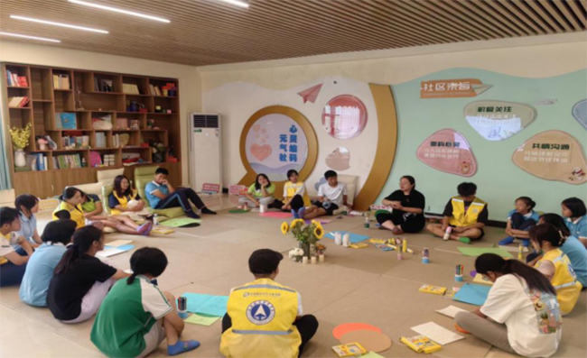 桂林8月12日电(通讯员 方圆贺 于桐)为全面深入贯彻习近平总书记关于学生心理健康工作的重要指示批示精神,深入贯彻落实全国教育工作会议、教育规划纲要以及全国加强和改进大学生思想政治教育工作座谈会精神。2024年7月12日上午,桂林航天工业学院计算机科学与工程学院暑期“心理健康青春行”大学生实践团队开展了“解码心灵元气,阅读循梦而行”第三期暑期实践活动,活动主题是:学会倾听与沟通—人际“不蕉绿”青少年团体辅导,主要对象为13到15岁的初中生。