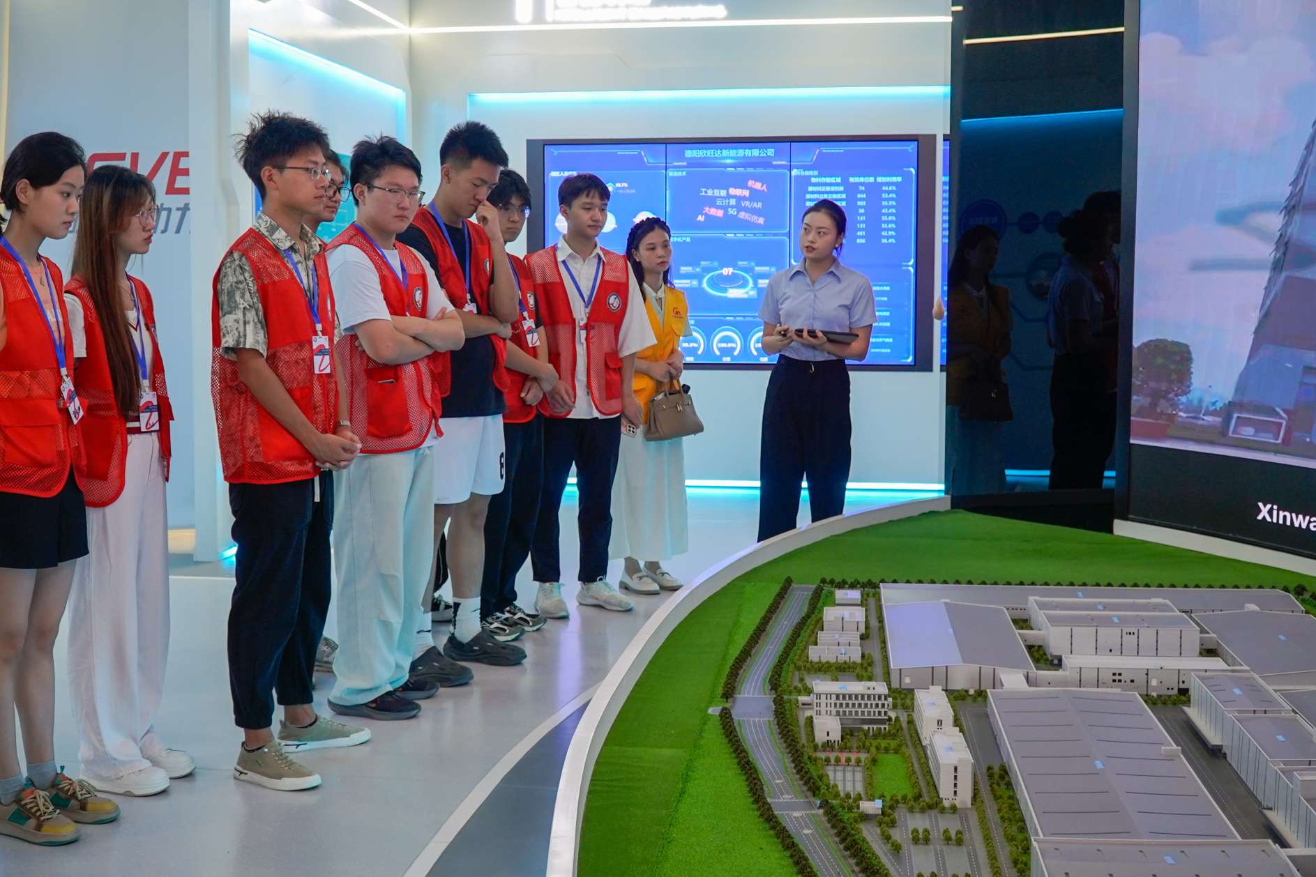 在欣旺达企业,支教队成员深入参观了现代化的企业展厅,详细了解了企业的先进生产技术和创新发展理念。从电池模组的研发到智能制造的实践,每一个环节都展现出欣旺达的卓越成就和无限潜力。志愿者了解到欣旺达三C消费类电池出货量位列全球第一。目前,欣旺达在全球拥有9个生产基地和研发中心,员工总数超过四万人。成为了国内领先的电动汽车电池供应商之一。2025年产能规划将达到500GWh。着眼未来,欣旺达公司将争当新能源赛道的“领跑者”,利用自身专业服务和创新技术,助力全球能源革命,为建设绿色地球贡献智慧和力量!