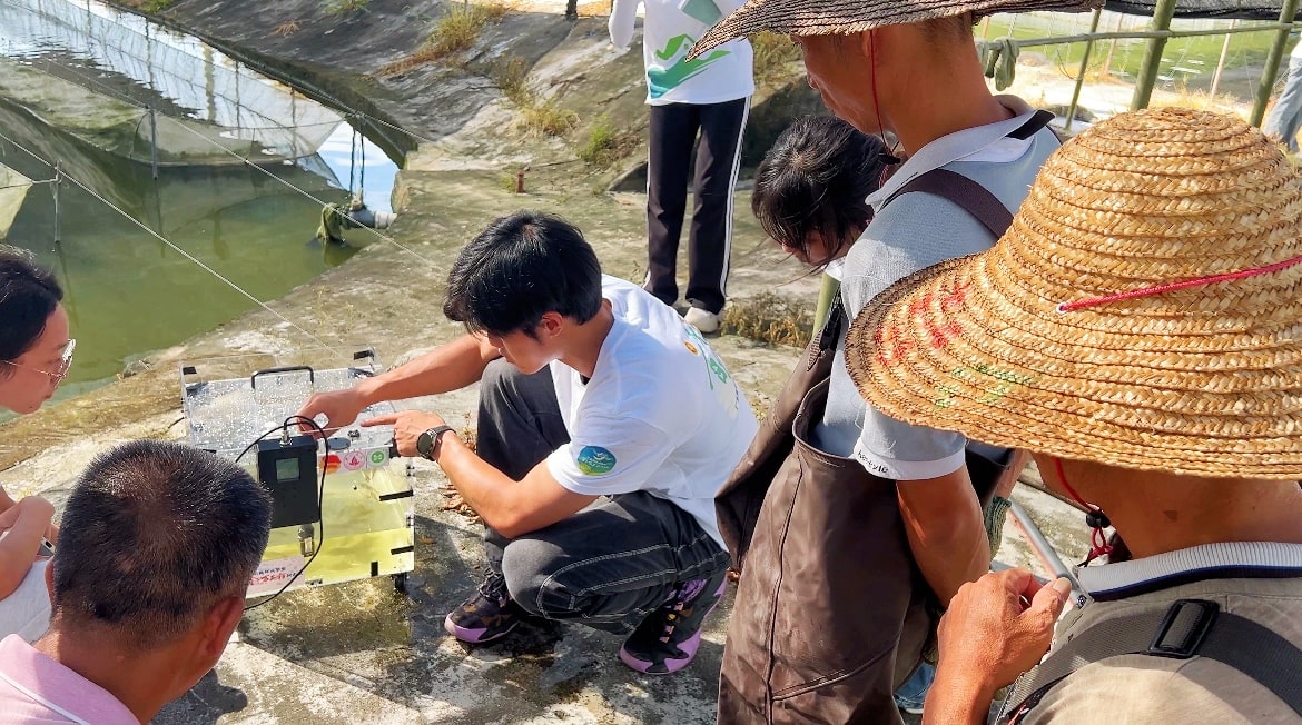 7月10日,该团队成员在抵达都斛村东利渔业合作社后,随即展开设备调试与试运行工作,实时观察并记录试验数据结果。同时,还为东利渔业的员工们详细讲解了设备的使用方法,指导渔民如何测量、记录数据。