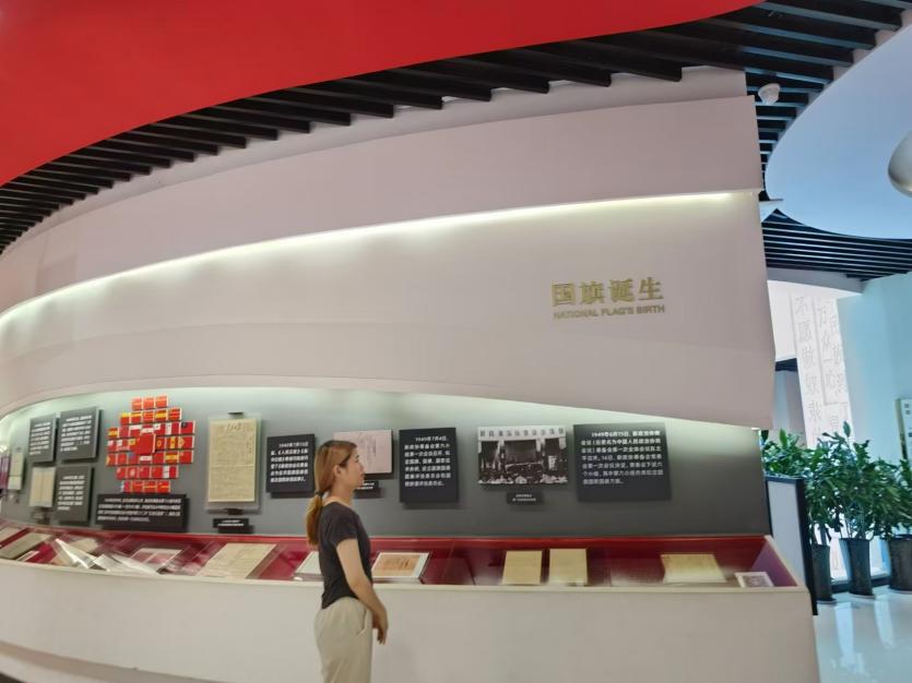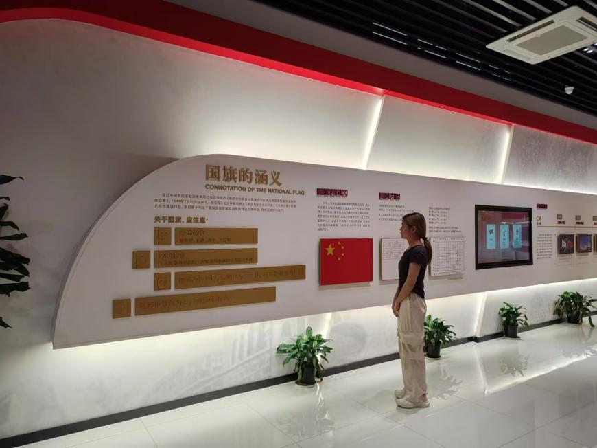 在参观过程中,我怀着崇敬的心情,认真观看的墙上的相关解说。从五星红旗的设计者曾联松先生的故事,到国旗诞生,再到国旗在重大历史时刻的庄严飘扬,每一个细节和过程都深深触动着我的心灵。红色象征革命,旗上的五颗五角星及其相互关系象征共产党领导下的革命人民大团结。站在馆内,看着国旗,我仿佛穿越时空,回到了那个波澜壮阔的年代,深刻的感受到国旗背后的含义。