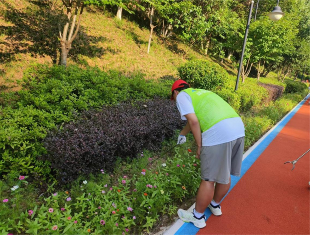 图为队员正在弯腰清扫垃圾。孔宇皓 供图