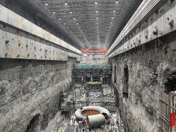对于江苏省句容抽水蓄能电站,同学们的访问从发电环节开始,走进了句容电站在建的地下厂房。这里的技术人员向同学们说明了抽水蓄能电站的工作机理以及工程枢纽的布置情况,强调了双碳政策在激励清洁能源投资和技术创新方面的积极作用。