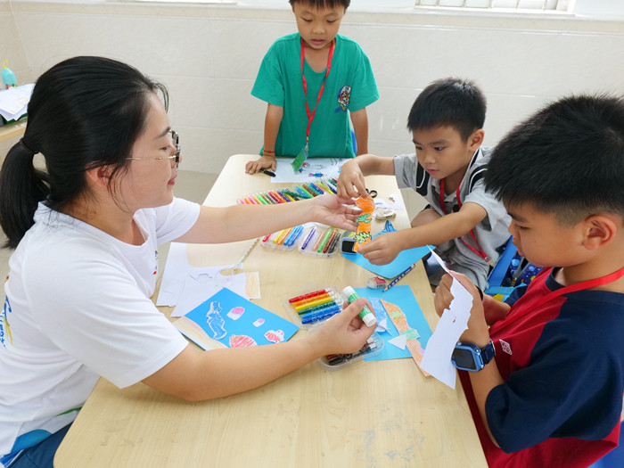 在绘画课堂上,支教老师循循善诱,通过提问与鼓励,引导学生们积极参与课堂讨论,让思维在碰撞中激发出独一无二的创意火花。学生们以细腻笔触绘梦,以灵动双手塑美,小鱼色彩斑斓,灵动遨游;荔枝盈满枝头,果香四溢;青花瓷淡雅高洁,古韵悠长;彩泥之花,栩栩如生,与花瓶画作相映成趣。在这里,每一笔一划、一捏一塑都蕴含着孩子们对生活的热爱与向往。