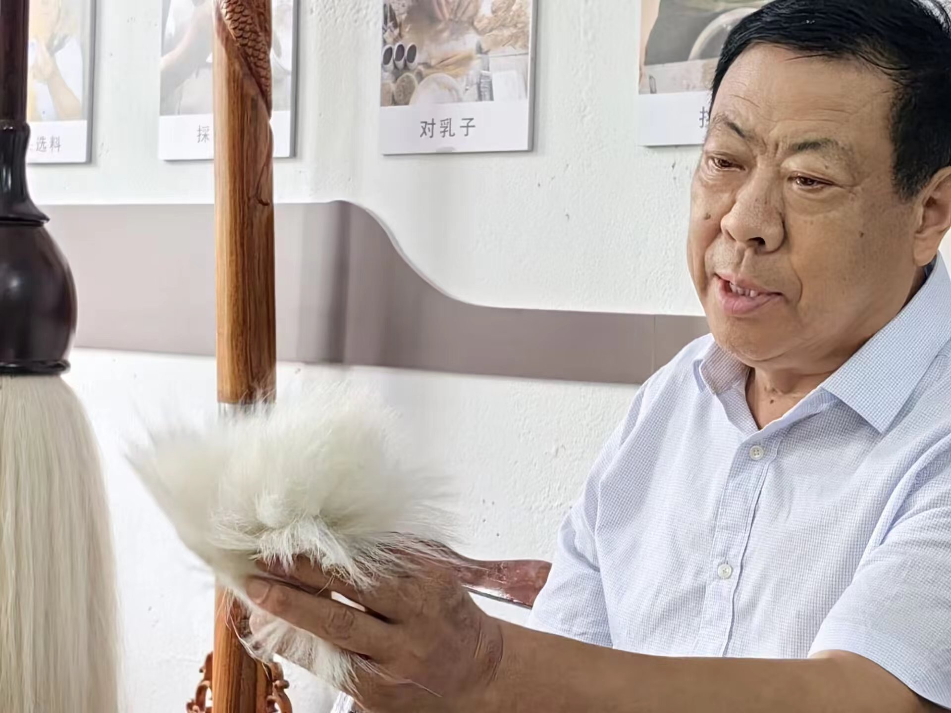实践队正式访问了齐笔研究院,并有机会与齐笔技艺传承人郭明昌先生进行深入交流。郭明昌先生对青年一代寄予了厚望,他强调:“齐笔的传承与发展,关键在于年轻一代的接力与贡献。年轻人应当具备活跃的思维与沉静的内心,积极学习齐笔技艺,并在闲暇之余勤加练习书法,以此增进对齐笔文化的理解与尊重。”