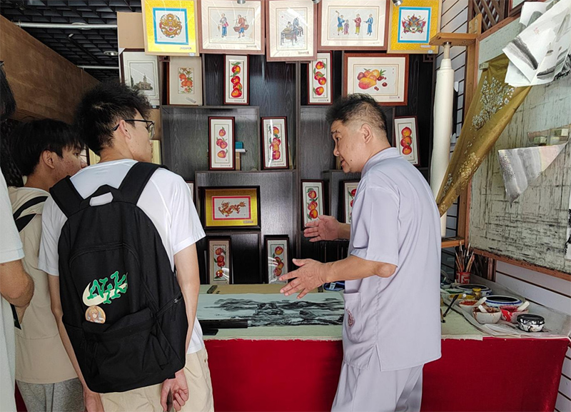 在胡家洪的工作室里,实践团看到了一幅幅精美的通草画作品。这些作品不仅题材广泛,涵盖了人物肖像、市井生活、海港风貌等多个方面,而且色彩鲜艳、层次分明,展现出极高的艺术水准。胡家洪表示,他在继承传统通草画技法的基础上,融入了现代美学元素,使得作品更加符合当代人的审美需求。