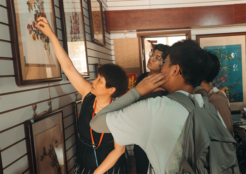 信息学院武汉寻非遗之旅实践团于7月下旬赴武汉高龙城国家非物质文化遗产传承园,深入探访了当地的汉绣工作室、通草画工作室、高龙博物馆。实践团在汉绣技艺传承人陈才珍女士与通草画艺术大师胡家洪先生的专业引领下,不仅亲眼见证了汉绣的细腻与华美、通草画的独特韵味,还深刻领略了高龙舞所蕴含的深厚文化底蕴。此次考察,不仅是一次对非物质文化遗产技艺的直接体验,更是一场对中华民族精神内涵的深度挖掘与理解。实践团成员深刻体会到,这些非遗项目不仅仅是技艺的展现,更是民族精神的传承与弘扬,它们跨越时空的界限,连接着过去与未来,让每一位接触者都能感受到那份来自心灵深处的震撼与共鸣。
