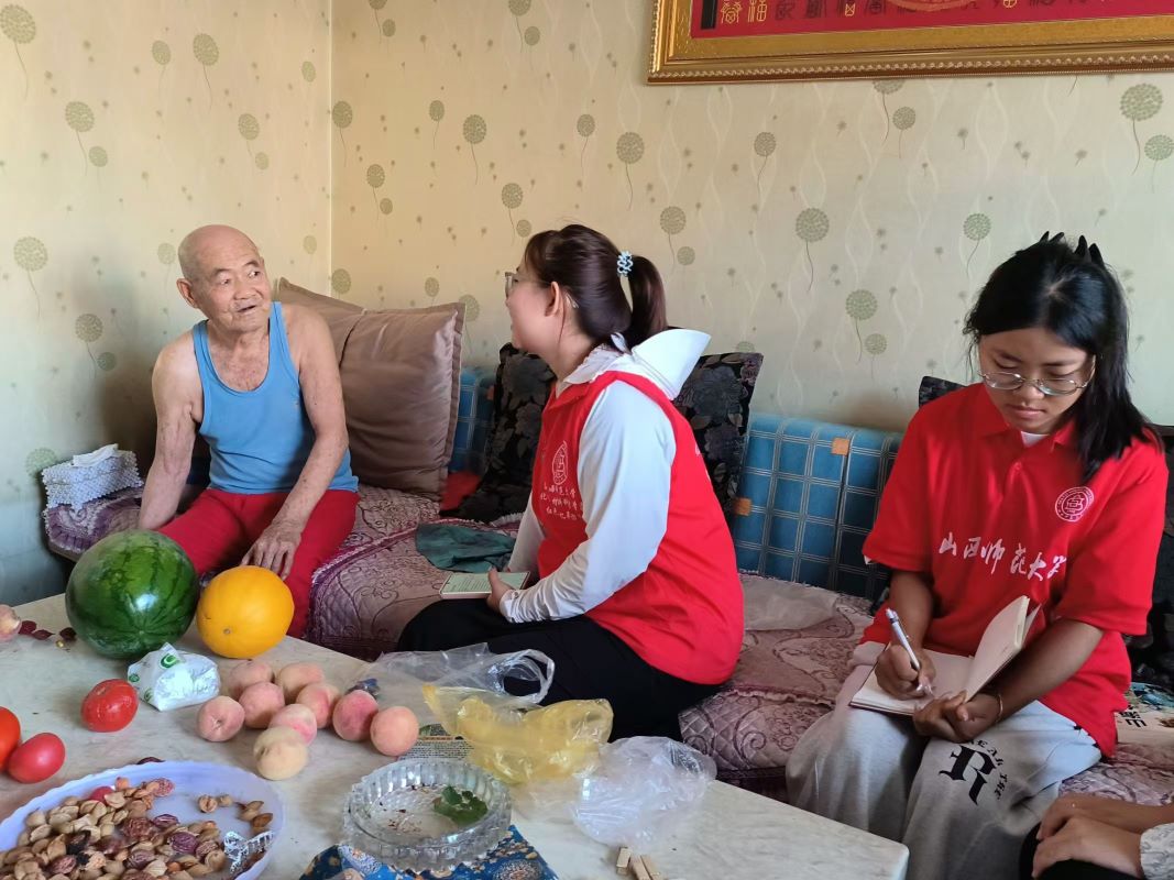 山西师范大学化学与材料科学学院红色记忆寻访团第八期红色记忆寻访实践队队员岳佳琪、程俐璇、栗亚萱、刘嘉茵、王雅欣、武嘉欣、余佳欣七人为进一步了解红色革命,深刻体会红色精神于2024年8月5日前往祁县东观镇阳光小区采访退伍老兵程清义爷爷。