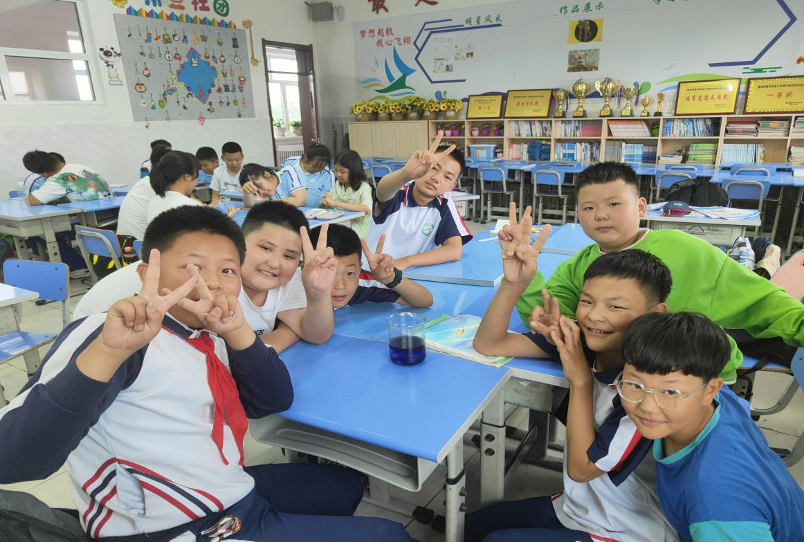 “我们都从学生时代走过,因此将教学重点放在从学生主体出发,打破传统应试教育的束缚,摒弃‘纸上谈兵’式的学习方法,将课本上的内容转入现实,为孩子们提供实验器具,让他们亲自动手,在实践中感受知识的魅力。”志愿老师孟洁介绍,将实践融入教学,开展丰富多彩的素质拓展课程是向草原夏令营的一大亮点,也是向草原志愿服务队根据当地教育、文化条件开展的一次创新性开拓。他们深知,教育并非单纯的灌输知识,而是用一束光点燃一束光,一个灵魂唤起一个灵魂。比起单纯的让小朋友们记忆知识点,志愿者老师们更倾向于利用孩子们天然的好奇心和探索欲,激发其内在的学习热情和自驱动力。课表上天文、科学小实验、体育、扎染、书法、爱国主义等一系列涵盖多领域的学科课程编织起了孩子们丰富多彩的求知之旅。