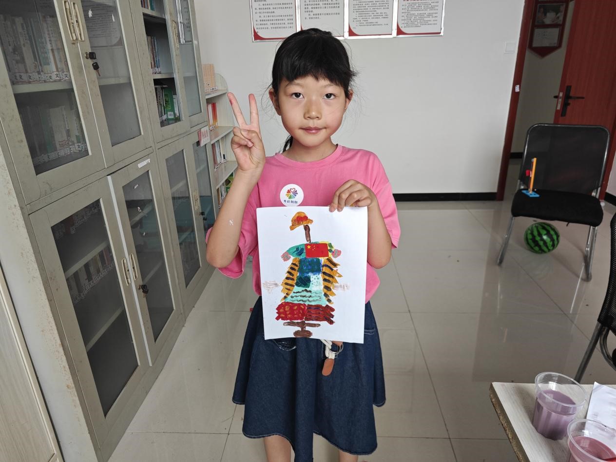 图为孩子们展示绘画成果。吴恒宇 供图。