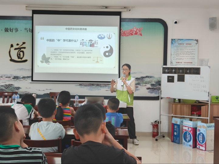 “橘井泉香”的传说,传颂着悬壶济世的仁心;“岐黄之术”的奥秘,蕴藏着中华文化的精髓。为宣传中医药非物质文化遗产,让中医药文化薪火相传,7月22日至24日,南京中医药大学薪火实践团“岐黄薪火续沙洲”小队前往张家港市塘桥镇鹿苑社区爱心暑托班,开展了为期三天的中医药文化科普讲座。为使小朋友们深入了解中医故事、感受中医魅力、爱上中医文化,实践团从中医、中药、功法三个方面精心准备了三节课,为小朋友们开启了一场别开生面的中医药文化之旅。