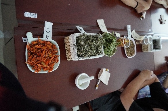 7月23日,实践团成员们带领小朋友们走进神秘的中药世界,探索植物的药用价值,感受中医药文化的魅力。他们从小朋友们熟悉的中药材入手,讲解着百合、丁香等十味药的药性和功效,让小朋友们对中药有了初步的认识。随后,宣讲员指着小朋友们面前摆放的药材让小朋友们尝试辨认。小朋友们积极参与,纷纷辨识出陈皮、百合、薄荷等药材,并惊叹于中药的神奇功效。在实践员的指导下,小朋友们分组制作香囊。他们将选好的药材放入研钵,用力捣碎,再将香气四溢的粉末装入香囊,制作出一个个独一无二的香囊。小朋友们在动手实践中,不仅学到了中药知识,更体验到了中医药文化的乐趣。