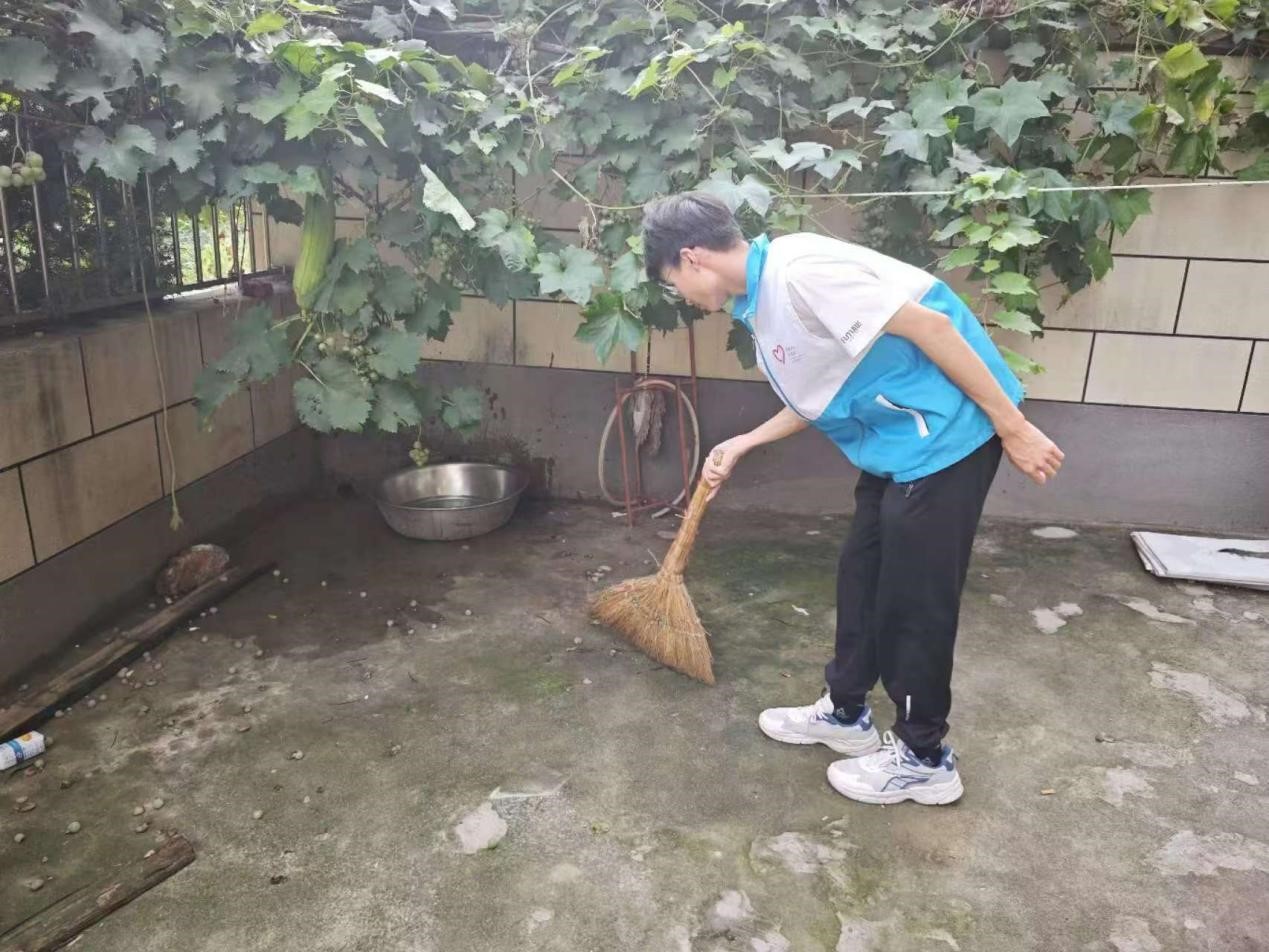图为志愿者为老年人打扫卫生。 刘虎 供图。