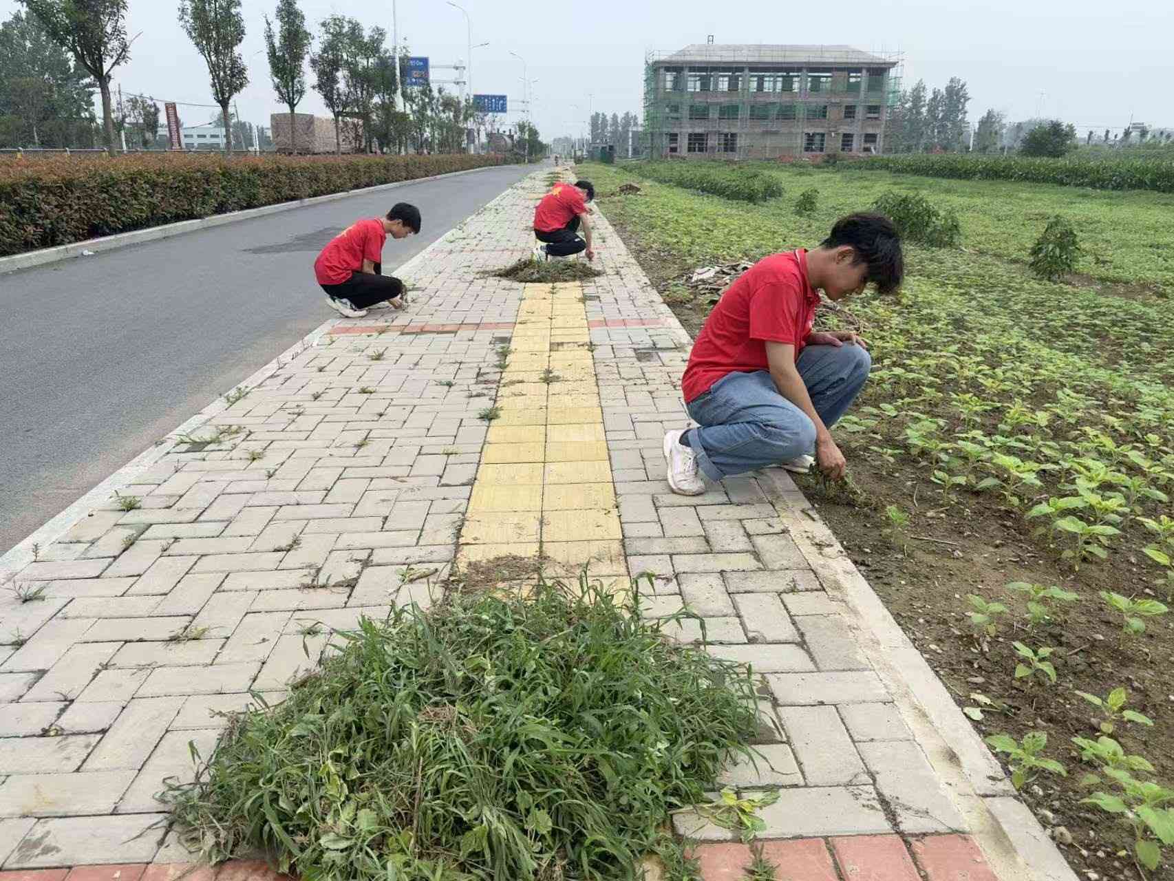 图为志愿者除道路杂草 。李少杰 供图。