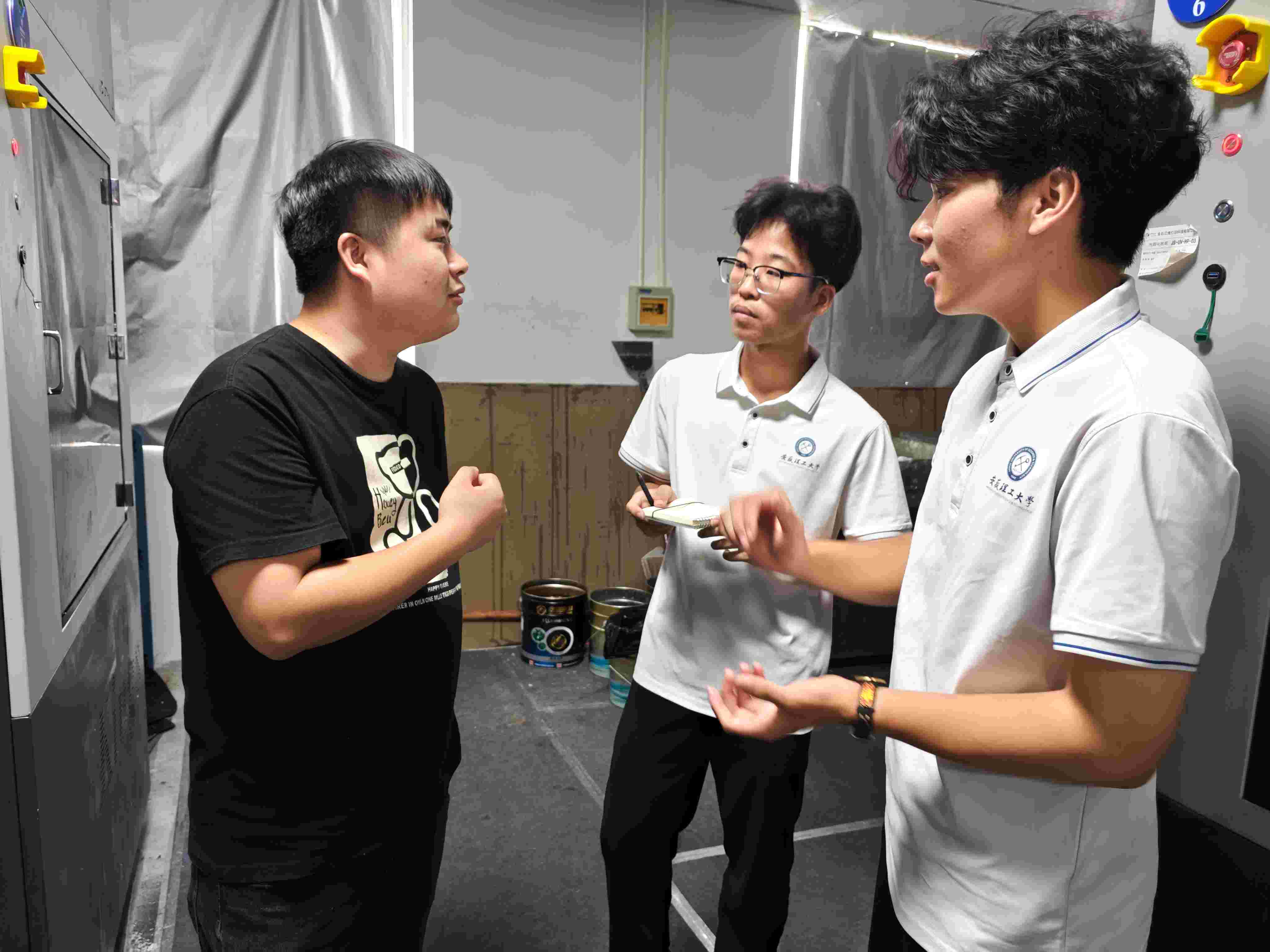 图为团队成员与公司负责人进行有关3D打印技术的问题讨论 姜文鹏摄