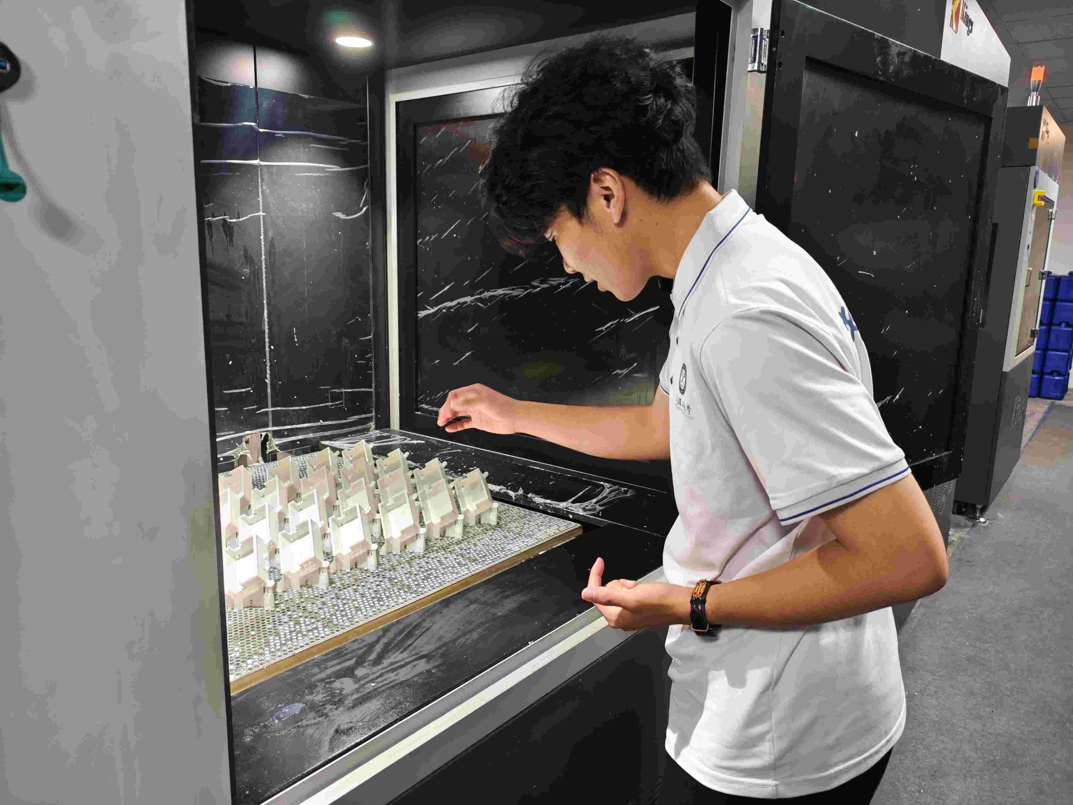 图为团队成员实地参观3D打印产品 姜文鹏摄