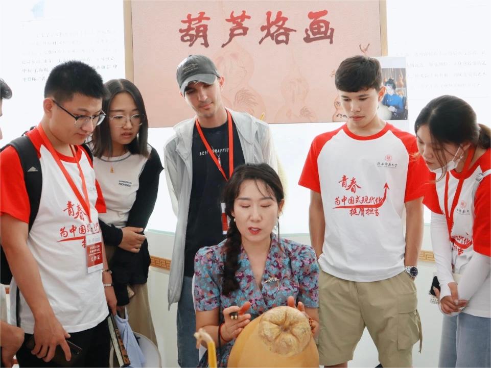 (图为团队成员在银川市非物质文化遗产展示中心观看葫芦烙画技艺 吴姝瑶摄)