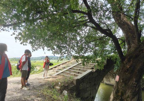 此外,队员们还了解到辰山村拥有丰富的人文历史,如左宗棠故居,还有一座有着200多年历史的古桥,桥为拱圈半月形砌成,桥面有巨型条石作护栏,建造工艺巧夺天工,这座桥完全由石块堆叠而成,至今仍保存较完好,桥头还植有一株树龄三百余年的重阳木,为过往行人提供休憩之处。