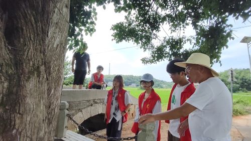 抵达隐山村后,在黄院哲主任和邓志平主任的带领下,化学学院三下乡团队实地走访游览隐山一墓——胡安国、胡宏墓;三树——元帅树、古柏、银杏;四池——莲花池、雷公池、洗笔池、化龙池;八桥——隐水桥、流叶桥、通箭桥、珂理桥、狮龙桥、栗林桥、神仙桥、龙王桥,体会到了自然的鬼斧神工以及传统湖湘文化和先进红色文化的深层价值。