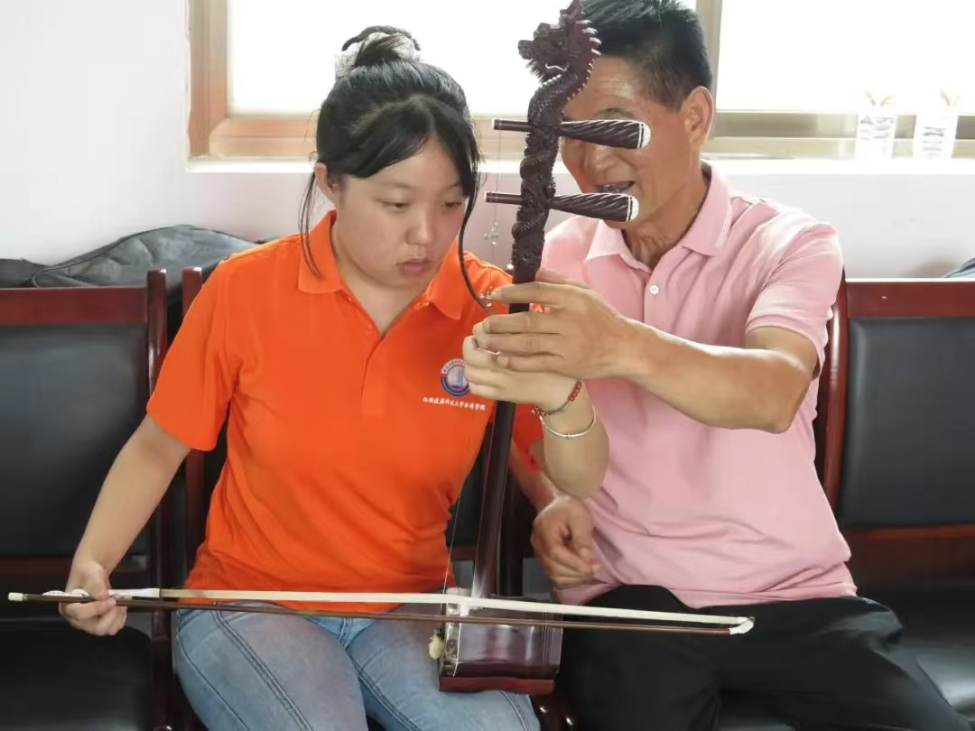 活动中,团队成员在秦腔戏班老艺人的带领下,学习了秦腔的基础唱腔和表演技艺,深入了解了秦腔的历史背景和文化价值。通过亲身体验二胡、堂鼓、锣、铙钹、梆子等乐器,感受到了秦腔艺术的独特魅力,并对这门古老艺术有了更深的认识和尊重。此次活动不仅是一场简单的艺术学习,更是一次跨世代的文化对话。大学生们的创新思维和现代视角,为传统秦腔带来了新的思考和可能性,探索了非遗文化在现代社会中的传承与发展路径。同时,该活动也促进了大学生与农村社区的深度融合。通过交流,大学生们更加明确了自己作为年轻一代在文化传承中的责任,而老年戏班的成员们也感受到了来自新一代青年的活力与敬意。