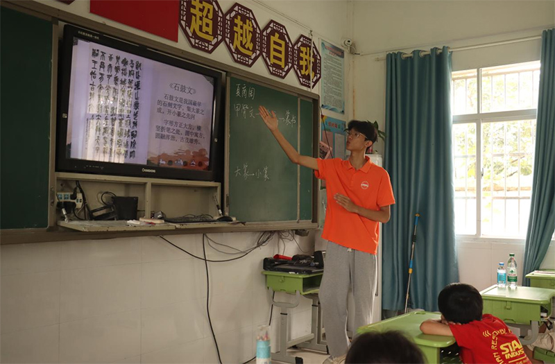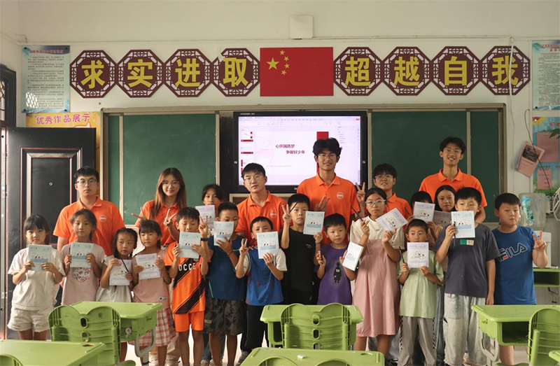 7月15日,合肥工业大学机械工程学院赴灵璧县“青春筑梦·灵璧振兴行"调研乡村振兴暑期社会实践团队前往宿州市灵璧县砂坝小学,为26名小学生开展学习国防教育、传统文化的课程。