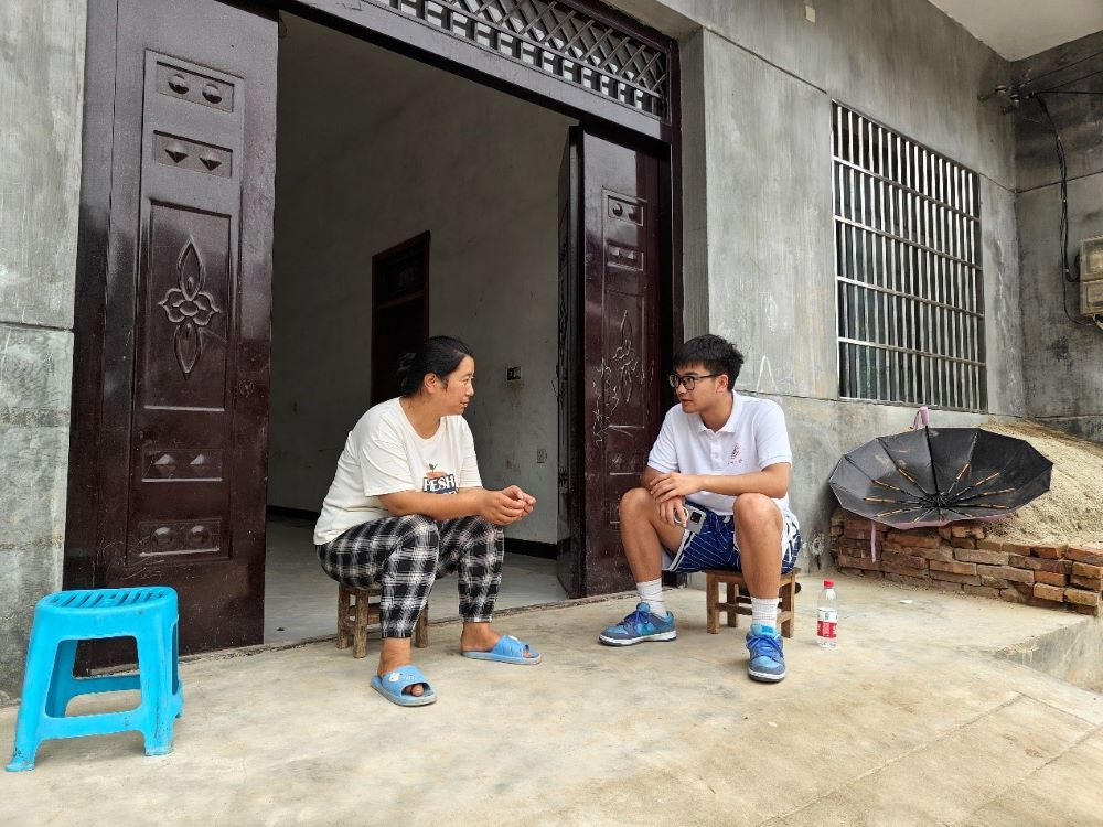 图为支教团成员在了解学生在家中的学习情况。李时充 供图