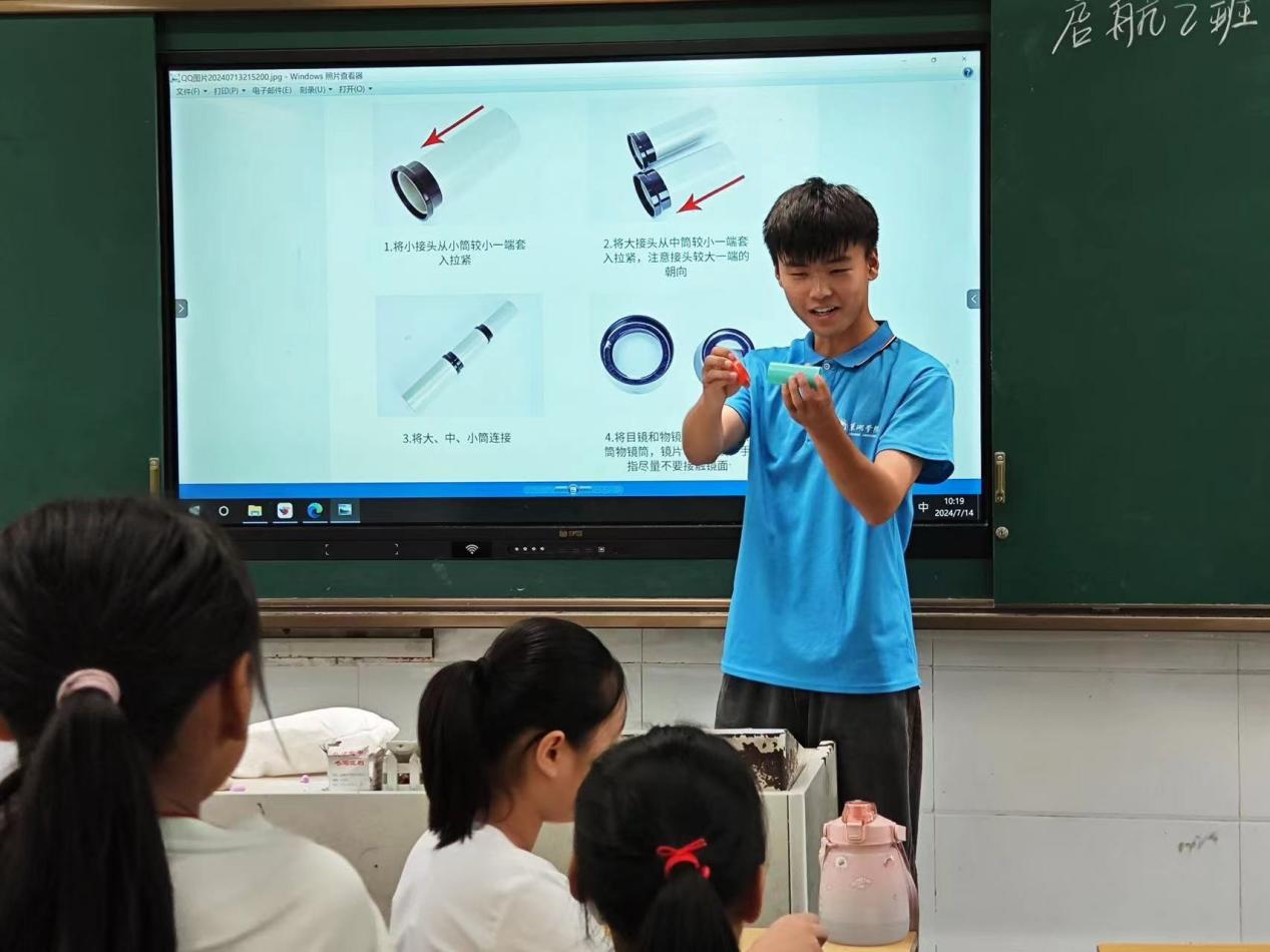 科学探索课程需要不断更新教学内容和方法,以跟上科学技术的发展步伐。这就要求我不断学习和研究新的科学成果,将其融入到教学中,为学生提供最新、最前沿的科学知识。与我同课程的支教老师也紧跟实事,嫦娥问月、北斗指路、天宫揽胜、神舟启航、问天辉煌,把这些航空事迹告诉了孩子们,并简单介绍发射原理、望远镜。