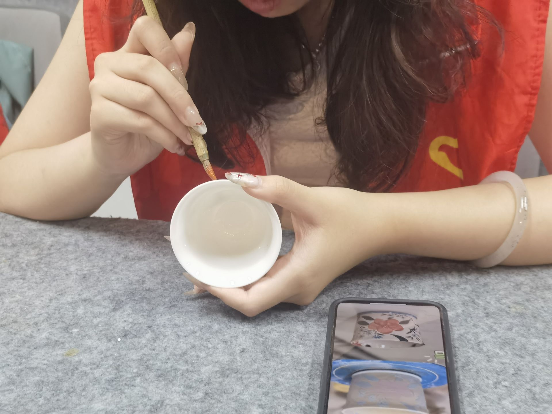 (图为实践队员绘制陶瓷釉上彩 实践队员:魏思竹 供图)