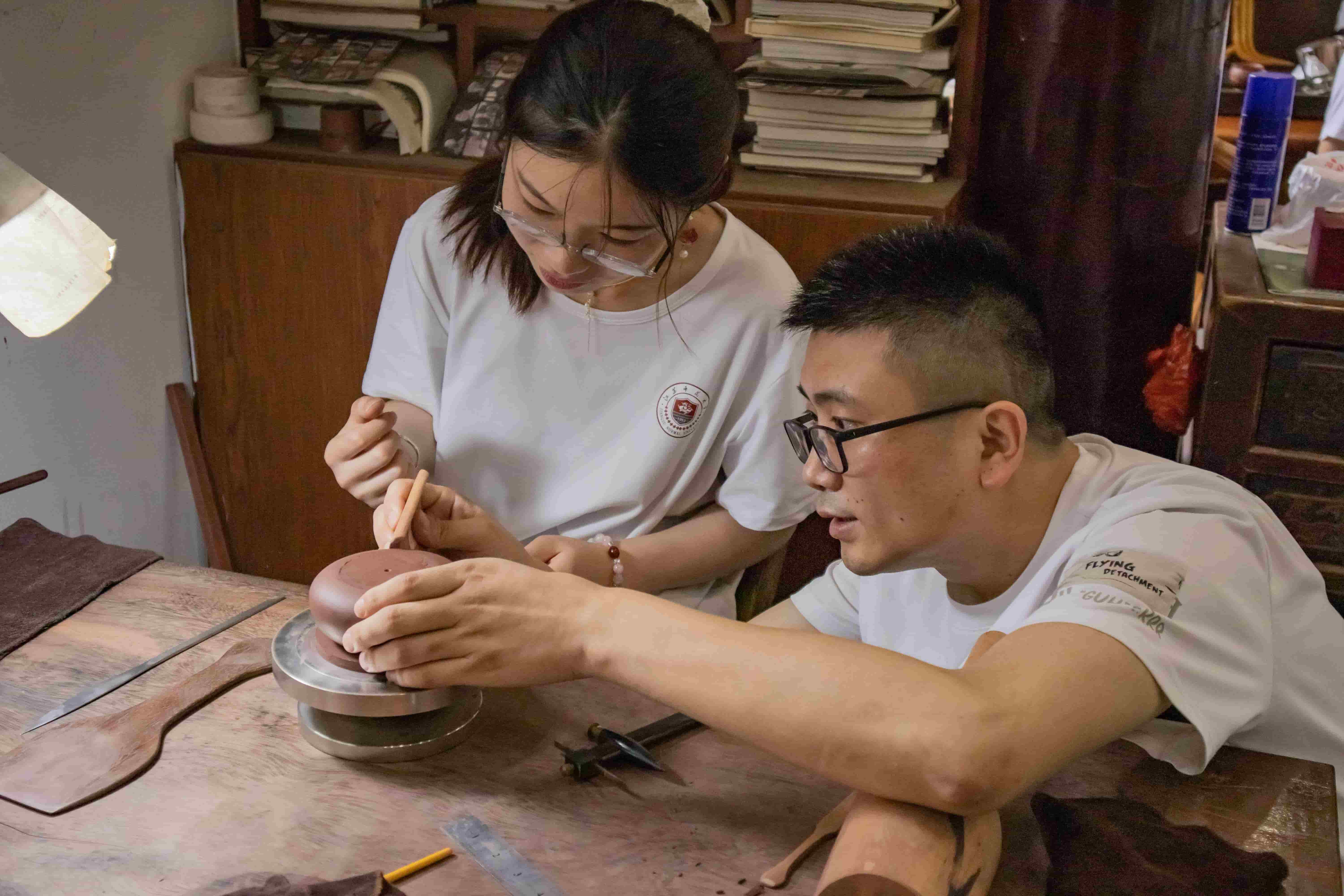 图为实践团采访紫砂手艺人。梁雯欣 供图