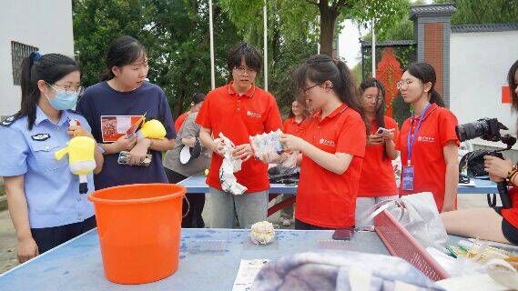 小组成员与当地活动参与者一起完成扎染。刘鑫雨 摄