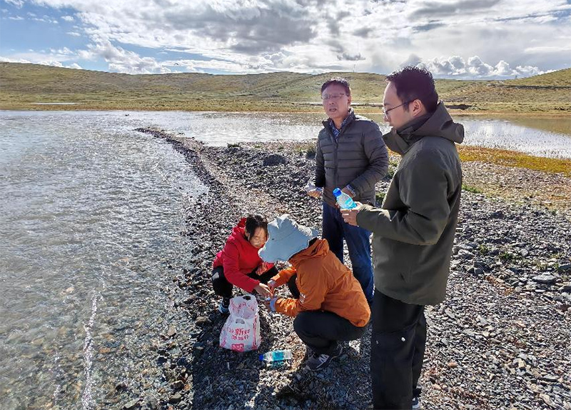 在黄河流域生态保护和高质量发展的战略背景下,时间队成员在三江源国家公园内的扎陵湖和鄂陵湖进行了湖水样本的采集工作。这些样本的采集旨在对两湖水质进行横向和纵向的全面比较分析,以评估水质状况及其动态变化。团队在扎陵湖选择了四个具有代表性的采样点,以及在鄂陵湖的三个不同位置和湖水出口处进行了采样,共计收集了八个水样。这些样本将被带回西安的实验室进行深入的化学、生物学和微生物学分析,探究气候变化和人类活动对黄河上游水循环及水源涵养的潜在影响。此项研究将为黄河流域的水资源管理和生态保护提供关键的数据支持和科学依据,有助于制定更为科学合理的保护措施,确保黄河源头的长期生态安全和可持续发展。
