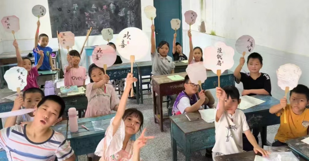 图为动物科技学院吾乐直属四队乡村支教团队开展的漆扇课程