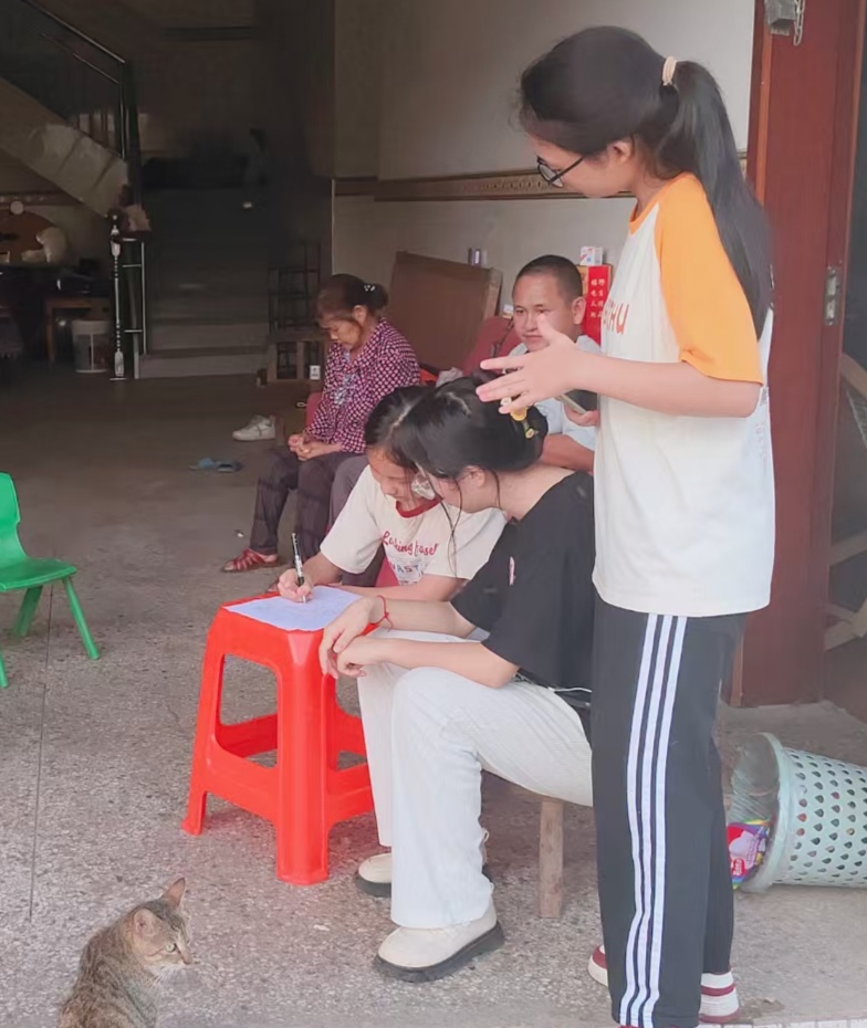 图为动物科技学院吾乐直属四队乡村支教团队正在进行首次周末家访
