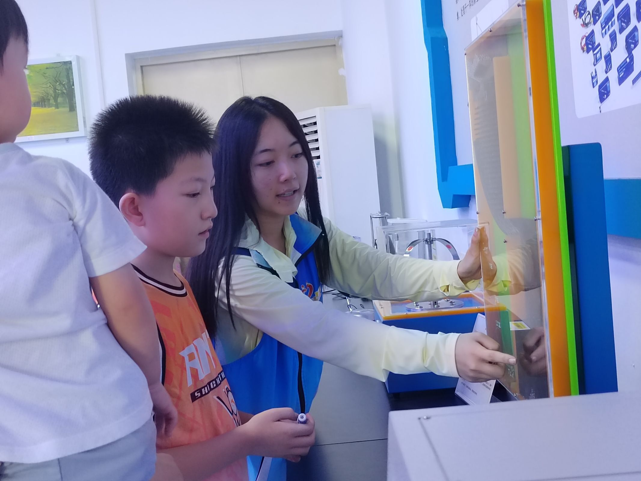 在物理演示实验室,志愿者们带领小朋友们一起走进奇妙的科学乐园。小朋友们在志愿者们的讲解和手把手的指导下,观察到了许多奇妙的物理现象。