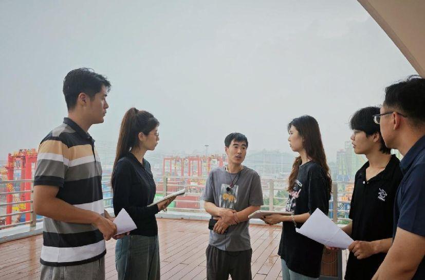 日照港,是中国北方重要的物流枢纽,更是绿色港口建设的典范。在展览馆内,讲解员结合馆内历史文献、图片等资料,详细阐述日照港的发展历程、战略规划以及在全球港口中的领先地位,特别强调其在绿色港口建设方面的创新举措与显著成就。团队成员不仅目睹了自动化集装箱码头的高效作业流程,深入了解智慧绿色干散货码头的环保理念,还详细听取海龙湾生态保护项目的实施情况。团队成员深刻感受港口在推动生态文明建设中的重要作用。