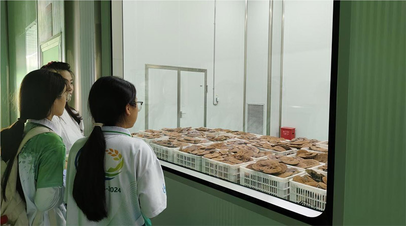 昌欣公司不仅是香菇种植技术的先锋,更是“企业+基地+农户”模式的生动实践者。来到企业车间,可以看到湖北省第一条全自动生产线。实践团了解到,该生产线可日产菌棒10-15万根。在灭菌降温环节,工厂仅需7小时即可完成,相比农户传统方式大幅缩短了半个月的时间,并且保证了成活率。此外,昌欣公司积极与高校合作研发液态菌种,进一步降低了生产成本,展现了科技与农业的深度融合。