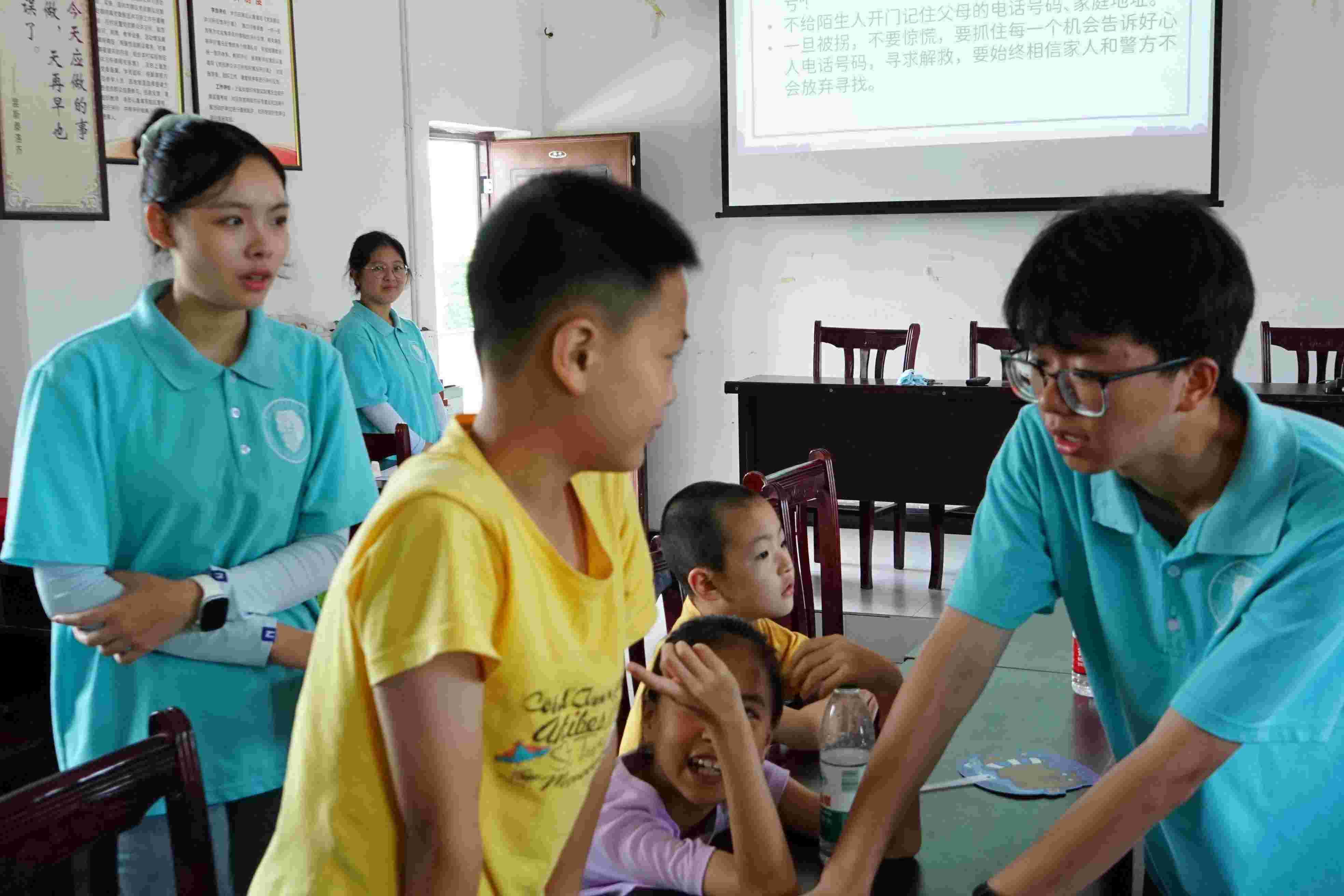 为检验孩子们的学习成果,还特别设置了互动提问环节。孩子们纷纷举手发言,分享自己对防拐防骗的见解与经验,展现了他们强烈的自我保护意识和积极向上的学习态度。服务队成员们则耐心倾听,细致解答,确保每个孩子都能充分理解和掌握所学内容。