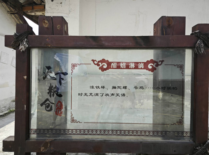 走在白市驿镇的老街上,成员发现了写着“天下粮仓”四个字的公告,进而了解到这里是原白市驿驿丞署,衙门旧址在日机轰炸白市驿时中弹,几成废墟。解放后建为了粮站,老街上老建筑颇多,在众多老建筑中,最吸引眼球的的就是这白墙青瓦,古朴古香的粮仓。实践团成员发现白墙上画有许多宣传画,得知白市驿利用天然的地理优势,以粮站仓库为基础,正在进行景观开发,老建筑也修葺一新。