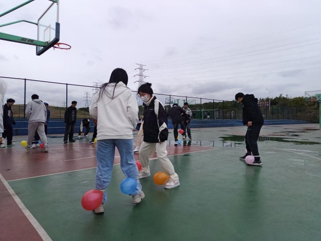 首先要进行的是国际文化知识气球大战环节,各队选派代表在固定区域内,仅凭双脚踩破气球获取内部的国际文化知识问题。气球爆破声此起彼伏,同学们在紧张氛围中积极思考,团队共同讨论答案,充分展现了对多元文化知识的渴望与探索精神,最终第三组队伍以答对七道题得分14分的结果拔得头筹!