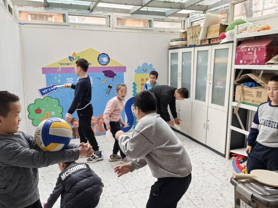 课间十分钟,教室里瞬间充满了欢声笑语。志愿者和小朋友们一同来到阳光房,做起了简单的体育运动和小游戏。大家在一起打排球、乒乓球、踢毽子,小朋友们都活力满满。随后,经典游戏 “盲人摸象” 欢乐开场,闭上眼睛的小朋友小心翼翼地摸索着,其他孩子则在一旁兴奋地呼喊着提示语,志愿者们也参与其中,不时发出阵阵笑声,整个阳光房洋溢着幸福与欢乐。
