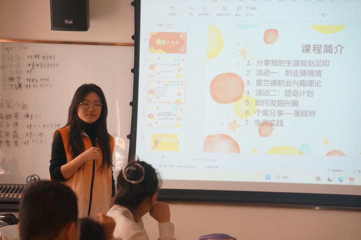 下午三时,短暂的课间休息和体育锻炼后,东关社区的小朋友们迎来了生涯规划第二课:识人识己,认识世界。此课程由山东大学研究生栾恺同学带领,以小组的形式展开。课程主要分为三部分:第一个是记忆小游戏,小组成员团结协作记忆内容并进行比拼,这一游戏增强了小朋友们的团队凝聚意识。第二个是选择自己喜欢的岛屿,其中每个岛屿代表着不同性格,孩子们分享了选择自己岛屿的理由,栾恺同学总结分享了选择同一个岛屿的小朋友的共同点,鼓励大家积极交友互动。第三个是小朋友们在志愿者的引导下阐述自己未来的职业规划,在一张表上写出自己喜欢做的事情,为最喜欢做的一件事写三个未来的规划。小朋友们与小组成员聊得热火朝天,整个教室充满了孩子们的欢声笑语,他们热情地分享自己的性格爱好,大胆畅想着对未来的期待。课程结尾,在志愿者同学的辅导下,小朋友们填写成长手册,记录一天的学习与成长。