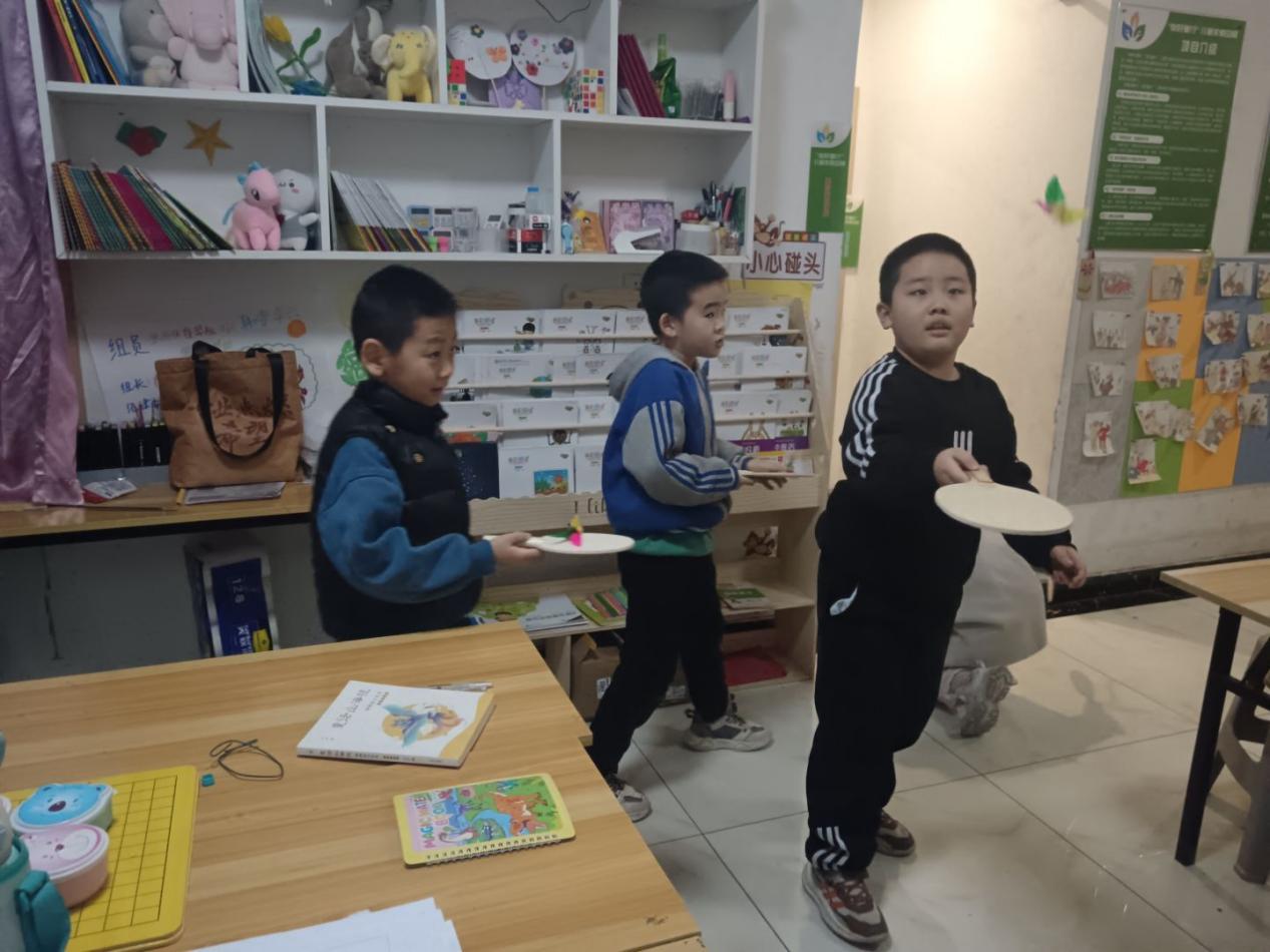 下午两点,有趣小游戏开场。抓鸭子和猜字谜的游戏让教室里充满了欢声笑语。在抓鸭子游戏中,孩子们围坐成一圈,按照规则依次说出“抓几只”等口令,紧张又刺激的游戏环节让孩子们的反应能力得到了锻炼。猜字谜游戏更是考验孩子们的知识储备和思维能力,一个个有趣的字谜激发了孩子们的好奇心和探索欲。他们积极思考,踊跃回答,当猜出正确答案时,脸上洋溢着自豪的笑容。