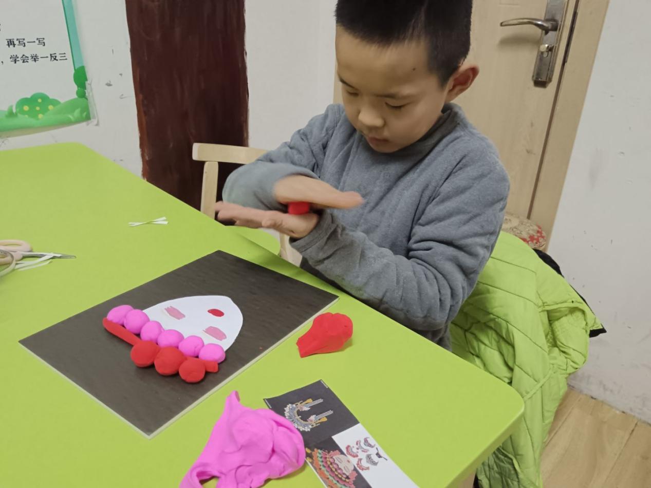 下午三点的的传统文化手工课将活动推向了高潮。在做灯笼的环节,志愿者们为孩子们准备了各种材料,耐心地讲解制作步骤。孩子们小心翼翼地裁剪、折叠、粘贴,发挥自己的想象力和创造力,制作出一个个精美的灯笼。用粘土做戏剧人物头饰的过程中,孩子们充分展现了他们的艺术天赋。他们仔细地揉搓、塑形,将五颜六色的粘土变成了一个个栩栩如生的戏剧人物头饰。通过手工制作,孩子们不仅学习到了传统文化知识,还提高了动手能力和审美能力。