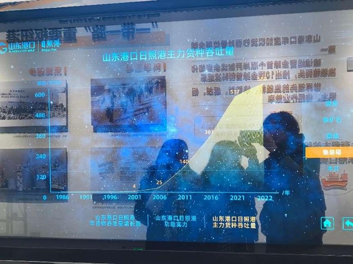日照港展览馆运用了多种先进科技,让参观者深刻感受到日照港的发展。馆内设有自动触摸屏,参观者可通过点击查询,深入了解日照港的历史变迁、业务范围、重大事件等详细信息. 精心制作的港口沙盘模型,直观展示了港口的整体布局、码头设施、航道线路等,使人对日照港的规模和架构一目了然。