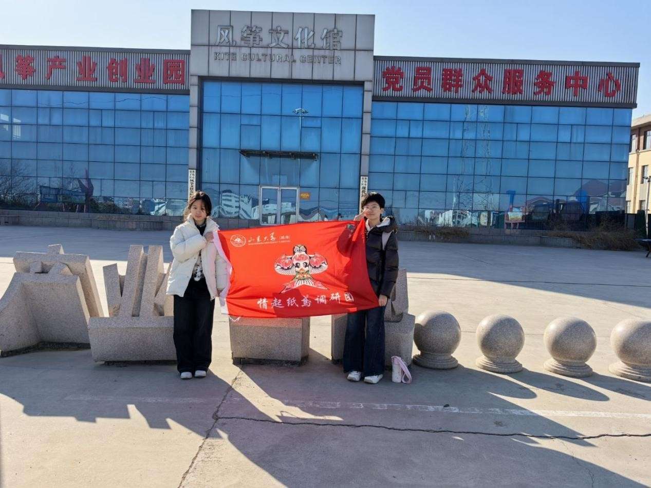 2025 年 1 月16日,山东大学(威海)情起纸鸢调研团奔赴潍坊坊子工业发展区王家庄子村,深度聚焦风筝产业,开展系列调研活动,其间与王家庄子四村党支部书记王振华深度访谈,并参观了极具文化底蕴的风筝文化馆。