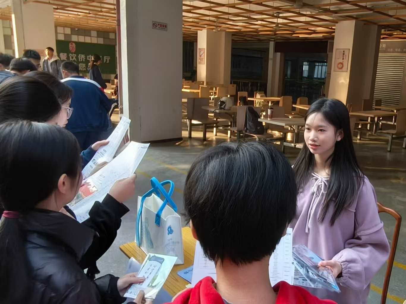 根据活动安排,我在20日下午4点10分进校,进行场景的布置,物品的摆放。同学们在4点50分来到摊位,我先是给同学们分发明信片、笔、文件夹等小礼品,然后结合着PPT,向他们讲解南信大的优势,主要包括师资力量、校园环境、美食出行、人文关怀等四个方面,因为是面对着高三的学生,我还向他们分享了很多我的学习经验,同学们听得非常认真,还有不少同学拿出纸笔认真记下,他们大多对南京信息工程大学表示非常有兴趣,对南京也很向往。