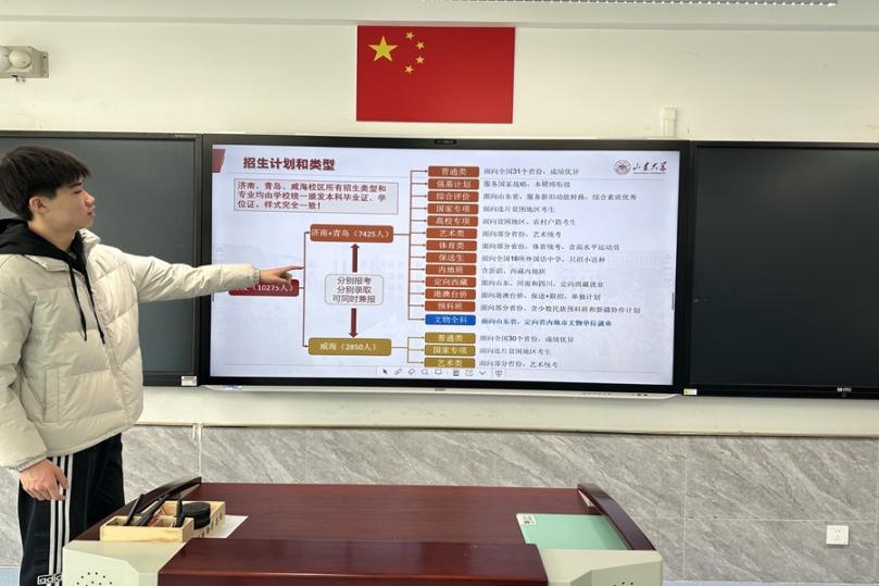 活动伊始,刘浩宇同学在教室中进行了生动的宣讲。他首先向学生们介绍了山东大学的悠久历史和现状,详细剖析了学校的各个专业及特色。通过丰富的案例和个人经历,他让同学们了解到,在山东大学不仅可以接受优质的教育,还能参与到丰富多彩的课外活动中去,全面提升自身的综合素质。同时,他也向在场的师弟师妹们介绍了近年来的招生政策,强调了准备大学申请和面试的重要性。