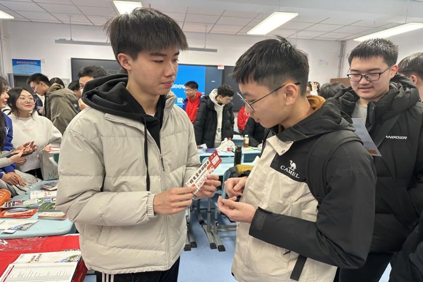 在宣讲结束后,刘浩宇同学和其他校友们在校园内设立了咨询摊位,热情接待前来询问的高三学生和家长。针对大家关心的专业选择、入学考试及校园生活等问题,校友们耐心解答,提供了宝贵的建议。刘浩宇同学结合了自身软件工程专业的特色,特别强调了在选择专业时要结合自身兴趣与职业规划,为同学们提供了具体的建议,帮助他们认识到在大学阶段制定合理的学习和发展目标的重要性。同时,还将实践小队的文创产品赠送给了一些前来咨询的同学。