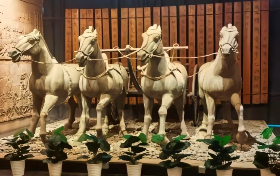薪火相传实践队的队员们又向参观者介绍了淄博市博物馆西汉齐王墓陪葬坑陈列展厅门口的四匹马。四匹马拉着一辆车,组成“齐王出巡”的雕塑。在古代礼制中,驾车马匹的数量是身份地位的象征。马象征着勇往直前的精神,它们代表了齐王乃至整个国家在面对挑战是应该具备的精神,同时也提醒了处在充满挑战与机遇时代的我们,在面对困难时也应有拼搏进取、永不言弃的精神!